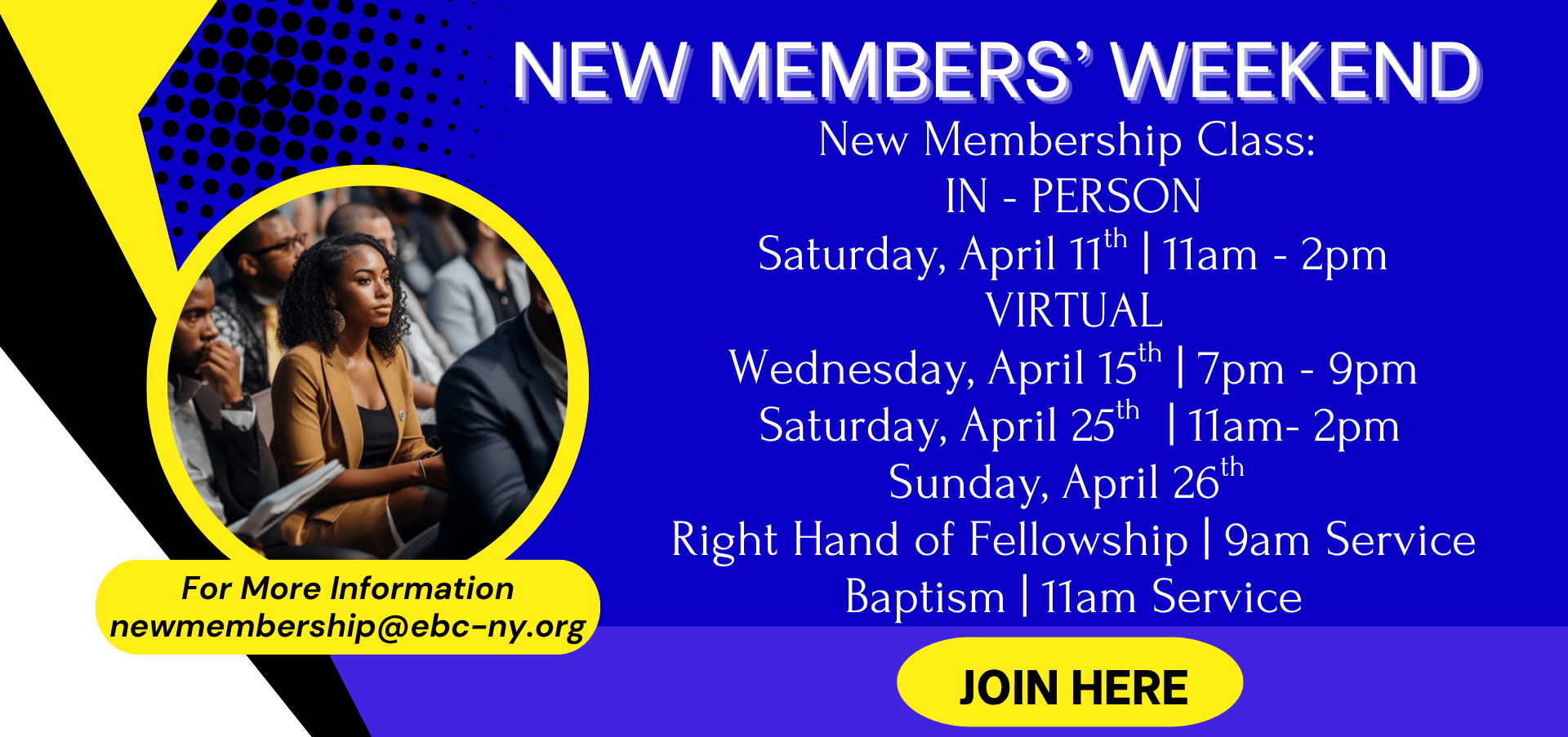 website banner - announcements (Instagram Post (Square)) (1920 x 903 px)EBC-GoMad-HeroSlide-2025-GSSlideNew members Weekend website (1920 x 903 px) Our Vision Transforming Lives Through the Love of Jesus Christ to Make a Better Me, a Better We, and a Better World. Blog/Vlog Sign Up Name*Email* Please leave this field empty. Worship With Us Calendar Watch Live Volunteer Projects New Member Resources